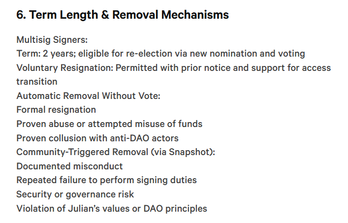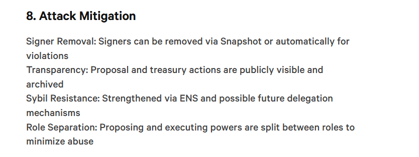Note the role separation factor listed below. Ideally if one submits a proposal and they happen to be a multi sig too - than that could be a conflict of interest. That needs to be monitored.
