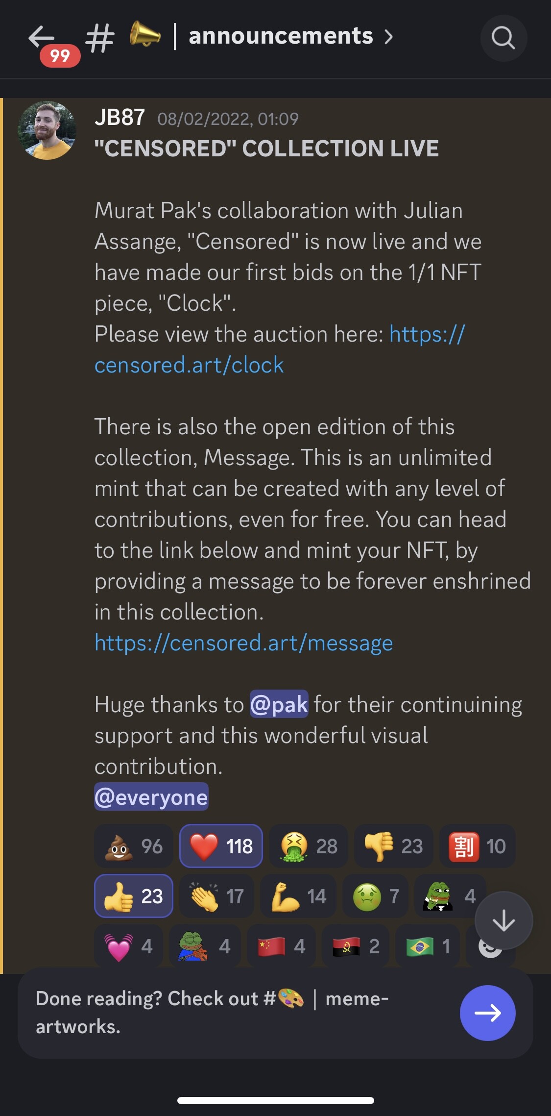 Why do you keep treating Park as the main force in rescuing Assange? You’ve been confusing the process. Everyone’s donations are for Mr. Assange, not to buy Park’s meaningless digital NFT! I’m telling you very clearly: all donors are doing it to save Mr. Assange, not for that NFT. NFTs are worthless. This auction process is just an intermediary to circumvent legal liability. Everyone knows this, but you keep twisting the facts. How shameless! Once again, Park is just an intermediary hired to help. They are not the ones saving Assange. It’s everyone in this community who is saving Mr. Assange!